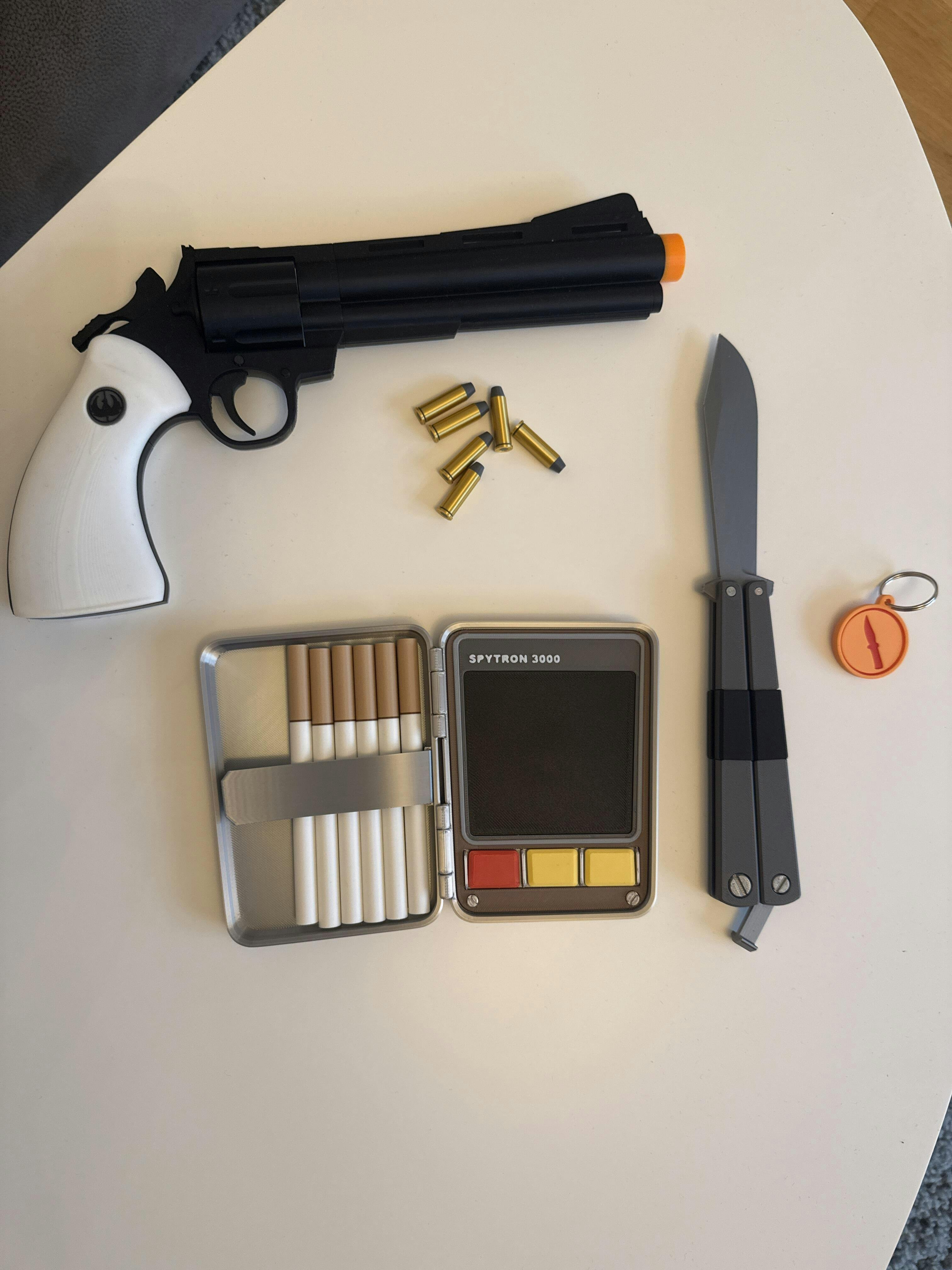 Don your sneaking suit with our high-quality TF2 Stock Spy prop bundle, featuring the Default Knife, Revolver, and Disguise Kit. These meticulously crafted accessories are the perfect addition to your TF2 Spy cosplay or collection, gearing you up for undercover espionage or getting behind enemy lines.